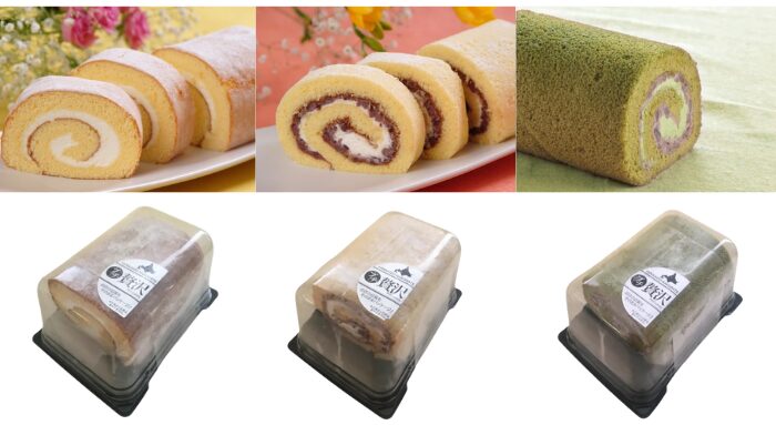 <ホールケーキ、シートケーキ、ロールケーキ、タルト>