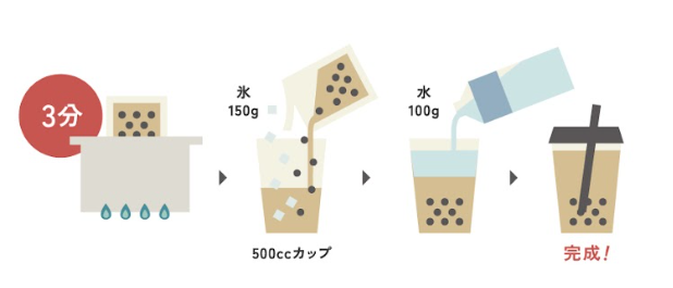 水と氷でだけ、牛乳不要でタピオカが提供できる155gシリーズ