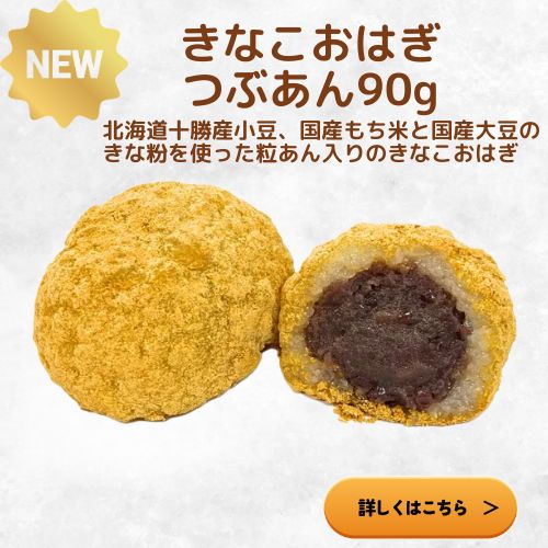 秋の売場におすすめのコンビニ和菓子を手掛ける北海道のメーカーの新商品をご紹介します。 「生ちょこもち」は、もっちりとしたお餅の中にとろける生チョコを包み込んだ人気商品。3玉で食べやすい「みたらし団子」は、トモエ日高昆布醤油の旨みを効かせた甘じょっぱさが魅力で、もちもち食感のお団子と相性抜群です。 北海道十勝産小豆を使用した「ミニ大福」は白と草の2種類、1個約20gの食べきりサイズです。食べごたえのある90gの「おはぎ」は粒あん・きなこ・ごまの3種類。国産もち米と北海道十勝の小豆を使った粒あんは、ほどよい塩気が美味しさを引き立てます。 さらに、季節限定で北海道十勝産小豆を使った「桜餅」と「柏餅」も予約販売を予定しております。販売開始の際にはあらためてご案内いたしますので、ぜひご期待ください。 ▼カテゴリページはこちら>>https://wagashi-biz.jp/list.php?c_id=1186 |