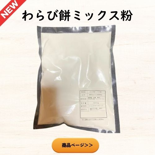 今回は、「板わらび餅(黒豆茶使用)」「きな粉」「うぐいす粉」「わらび餅ミックス」のご案内です。 お好みのサイズにカットできる「板わらび餅(黒豆茶使用)」は、黒豆茶と本蕨粉を使用し、ぷるぷるとした中にもほどよい弾力を感じる仕上がりです。冷凍納品のため、必要な分だけ解凍して使用でき、きなこをまぶしての店頭販売や、デザート盛り付けにもおすすめです。 仕上げには、国産大豆の「きな粉」と、京都産抹茶を加えた「うぐいす粉」をご用意。うぐいす粉は水分を含むと色が鮮やかに映え、上品な見た目に仕上がります。 また、水またはお湯を加えて加熱するだけで仕込める「わらび餅ミックス粉」も便利です。本蕨粉入りで、好みの固さに調整でき、定番のわらび餅から人気のドリンクメニューまで幅広く対応します。 ▼詳細はこちら>>https://wagashi-biz.jp/list.php?c_id=1322 |