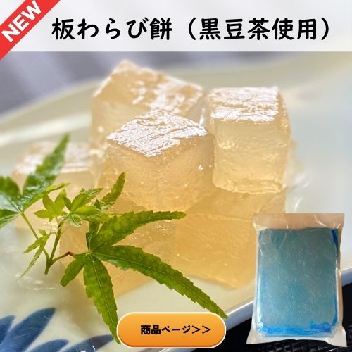 新商品 お好みサイズにカットできる「板わらび餅(黒豆茶使用)」