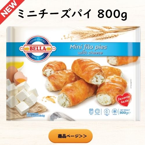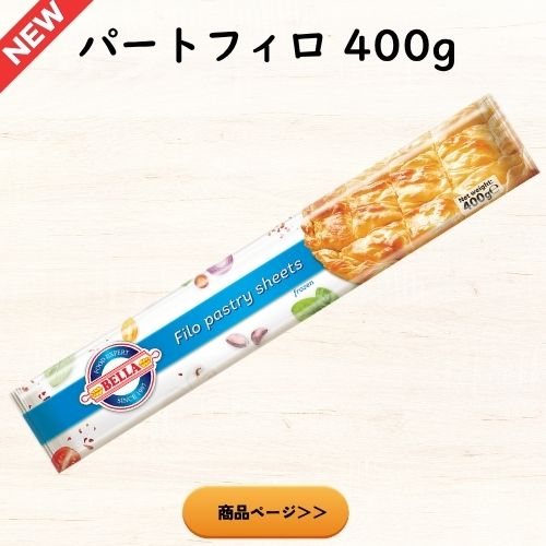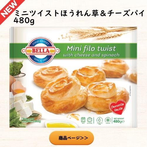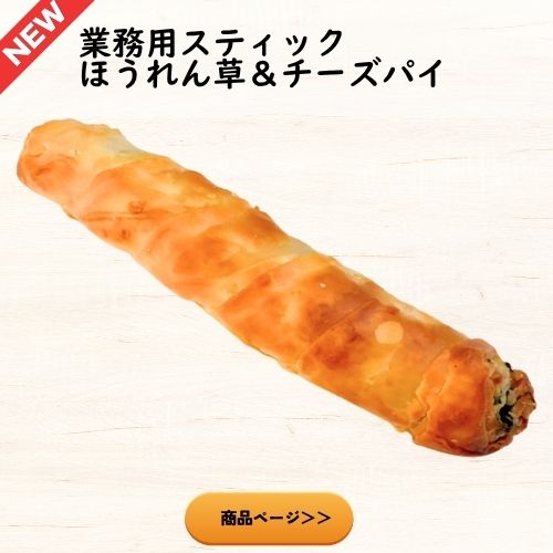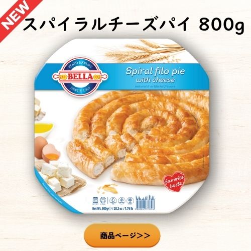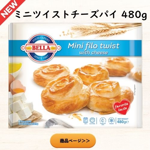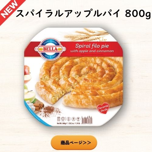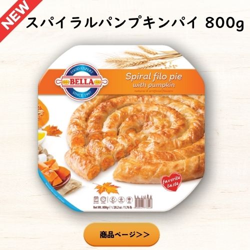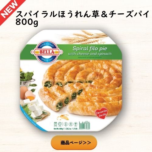 ブルガリアの伝統的な家庭料理「ヴァニツァ」13品をご紹介いたします。パリパリと軽やかな食感が魅力のパートフィロ生地に、塩漬けチーズ「シレネ」やほうれん草、アップルフィリングを包みました。オーブンで焼くだけで仕上がります。 冷凍販売店や輸入商品の売場に最適な冷凍販売用タイプは、デザイン入りパッケージ仕様で陳列映えも抜群です。渦巻状の「スパイラルパイ」は、チーズ・ほうれん草&チーズ・パンプキン・アップルの4種類。コロンとした形の「ミニチーズパイ」や、ひと口サイズで食べやすい「ツイストパイ(チーズ/ほうれん草&チーズ)」もございます。 また、カフェやキッチンカーなど焼き立て販売をご検討の方には、業務用もございます。冷凍のままオーブンで焼成でき、手軽に焼き立ての香ばしさを提供していただけます。素材としても便利なパートフィロ生地は、重ねたり巻いたりして多様なアレンジが可能。パイやキッシュに活用いただけます。 |