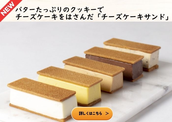 新商品 バター香るクッキーで挟んだ9種類のチーズケーキサンド