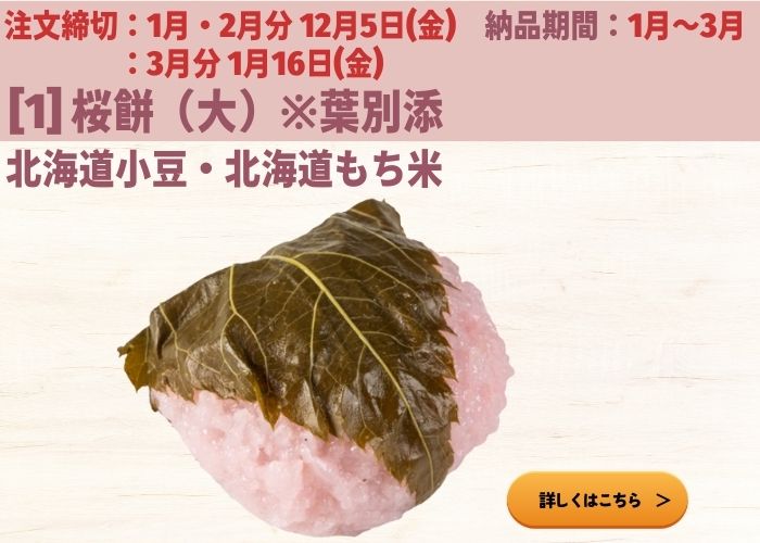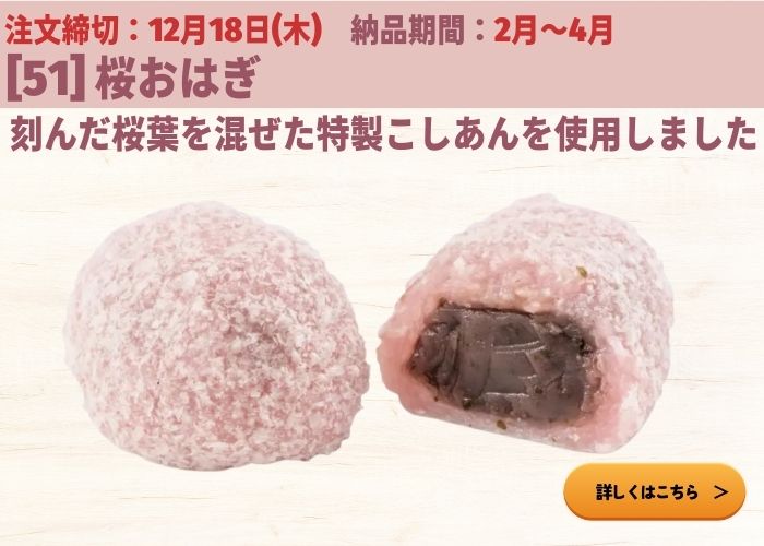 新商品 桜餅・桜おはぎ特集※注文締切 12/5,18、1/15,19,30,31