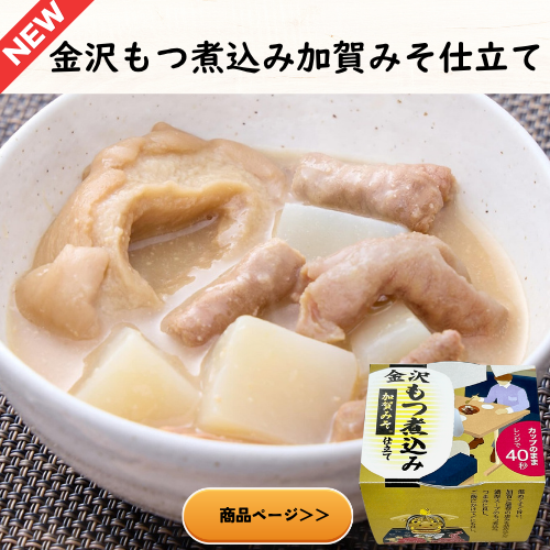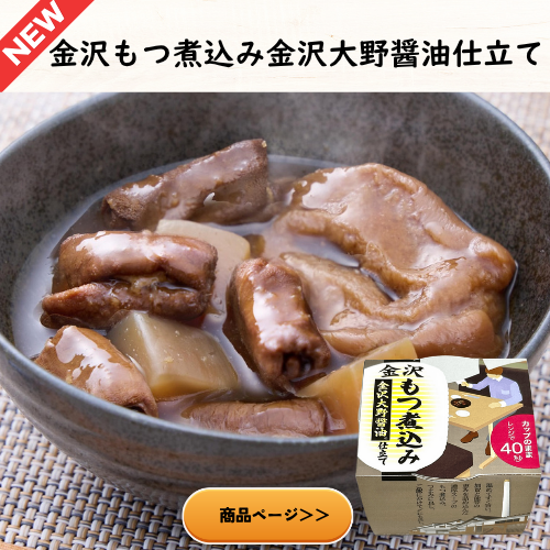 金沢大野醤油・加賀みそ仕立ての2種類のカップ入りもつ煮込み