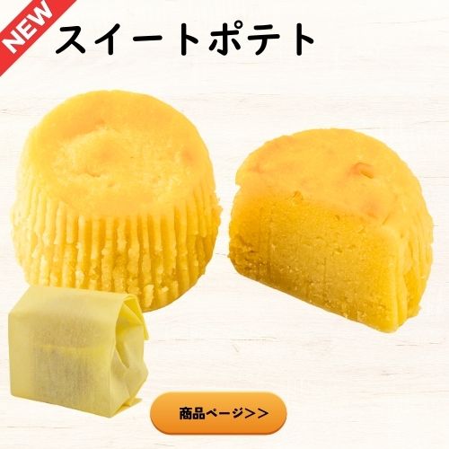 今回は、冷凍180日・解凍後常温30日間販売が可能でありながら、生菓子に近い美味しさをお楽しみいただけるロングライフの新商品をご紹介いたします。 「チーズケーキ5号」はオーストラリア産ナチュラルチーズを使い、しっとりなめらかな仕上がり。「アップルパイ5号」は手織りパイで国産りんごの蜜煮とシナモンを包み焼き上げ、パイの食感とりんごのごろっと感をお楽しみいただけます。 いずれも化粧箱入り・箱なしをお選びいただけるため、ギフト需要からお土産店での常温販売まで幅広くご活用いただけます。 茨城県産さつまいもを使った「スイートポテト」「スイートマロン」は、しっとりとしたくちどけが特長で、シンプルな個包装仕様のため、ロゴシール貼付などによるオリジナル商品としての展開にもおすすめです。埼玉県産小麦を使った「乳菓」は、素朴ながらも幅広いお客様に親しんでいただきやすいミルク風味の焼き菓子です。 いずれも常温販売用で、バラ販売はもちろん、詰め合わせ商品としての展開にもおすすめです。 |