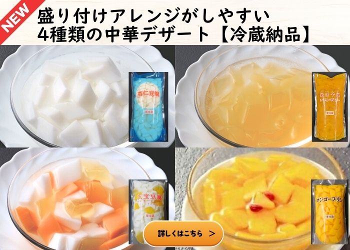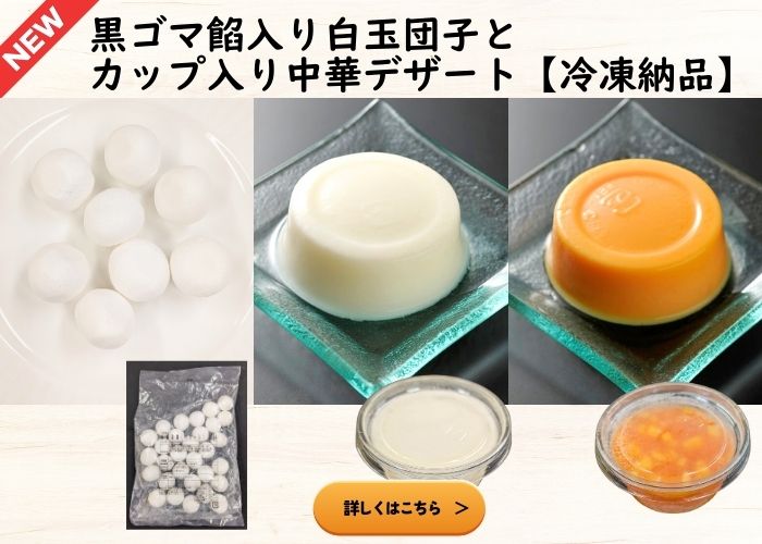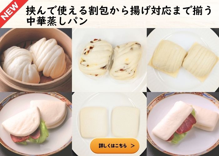 今回は、蒸し器で仕上げるだけの中華まん・中華蒸しパンと、解凍や盛り付けのみでそのままご提供いただける中華デザートをご紹介いたします。 ホテルや中華専門店にも採用実績のある中華メーカーの商品で、特別な調理や仕込みを行わずとも、提供時の見映えと専門店品質の美味しさを確保できるラインナップです。 中華まんシリーズは、広東式釜焼きチャーシューを包んだ叉焼包(チャーシューパオ)や、黒豚肉まん、角煮バーガーやチーズカレーまんなど、蒸し上げるだけで提供できる冷凍納品の商品です。小サイズやミニサイズも展開しており、軽食や食べ歩き、セットメニューなど用途に応じた使い分けが可能です。 中華蒸しパンは、肉や野菜などを挟んでオリジナルの中華まんが作れる割包(カーパオ)をはじめ、揚げパンにも適した饅頭(マントウ)、木の実の食感が楽しめる木の実花捲(キノミファージェン)など、アレンジの幅が広く、主菜から軽食まで対応できます。 ホテルや外食店、キッチンカーでの提供にもおすすめです。 中華デザートでは、特製黒ゴマ餡入り白玉団子の「芝麻湯圓(ツーマータンエン)」や、カップ入りの杏仁豆腐・マンゴープリン・レモンゼリーなど、加工せずそのまま提供できる冷凍納品の中華スイーツのご用意がございます。ビュッフェや食後のデザートメニューにおすすめです。 冷蔵納品の杏仁豆腐、マンゴープリン、愛玉子風レモンゼリー、三宝豆腐は、お好みの器に盛り付けて提供でき、フルーツを添えるのもおすすめです。外食店・カフェの定番デザートとして使いやすい商品です。 |