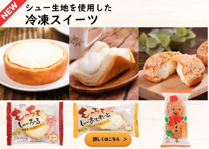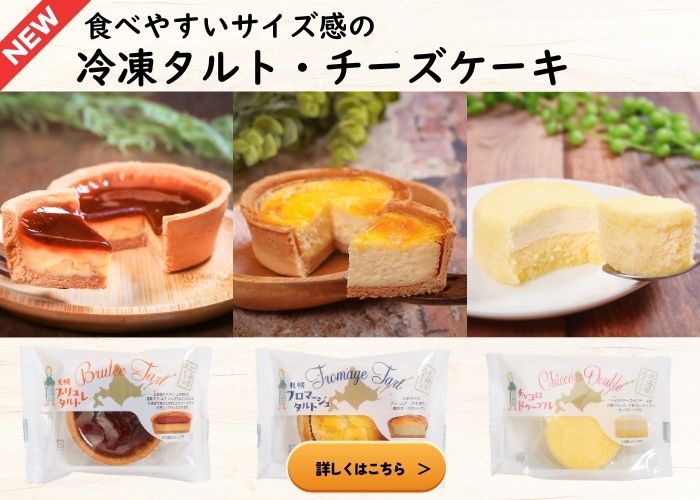 今回は、北海道のメーカーが手掛ける「アイス・ジェラート」「冷凍スイーツ」「チーズ加工品」「ソーセージ」をご紹介いたします。いずれも北海道素材にこだわったラインナップで、温浴施設や催事販売、キッチンカーまで幅広くご活用いただけます。北海道生乳100%使用の8種類の濃厚アイスと、4種類の後味さっぱりのジェラートは、ミルクや夕張メロンなど北海道らしい定番フレーバーを豊富に揃えました。スリーブ付きカップで売場に並べやすく、ジェラートは価格面でも導入しやすいため、ご当地フェアや温浴施設にもおすすめです。 北海道生乳を使用し、日高昆布醤油で味付けした焼きとうきび風味のアイスモナカ。焼きとうきびを思わせる見た目も特徴的で、観光地の売店、催事販売にぴったりのユニークな一品です。 「もっちもしゅ~ろ~る」「もっちもしゅ~おむれっと」は、ホイップやカスタードクリームをたっぷり挟んだ食べ応えのあるスイーツです。「雪だるまシュー」は、見た目のかわいらしさとボリューム感で店頭で売り場映えする商品です。 凍ったままカタラーナのように楽しめる「札幌ブリュレタルト」、さっぱりした酸味の「札幌フロマージュ」、ベイクドチーズとレアチーズの2層仕立てのチーズケーキ「チッコロドゥーブル」は、かわいらしいパッケージで、食べやすいミニサイズのタルト・チーズケーキです。 北海道ミルク仕立てのクリームパンは、ミルククリーム、バニラカスタードの2種類のご用意です。パンでありながら冷凍賞味期限180日と長く、冷やしても美味しいクリームパンです。 北海道生乳のモッツァレラを使用した「COW'S KITCHEN」シリーズは、バジルや山わさび・ブラックペッパーの3種類のご用意で、そのままでもアヒージョのように加熱してもお楽しみいただけます。「おさしみモッツァレラ」は刺身風やカルパッチョなど幅広いメニュー提案に対応可能です。いずれも冷凍納品です。 加熱することでモチモチとした食感が楽しめる「カチョカバロ」シリーズをはじめ、串刺しで食べやすい「もっちもちーず」、さきいか風の「北のおいちーず」、電子レンジ調理でチーズフォンデュのように楽しめる「レンジでのび~る」シリーズなど、幅広いラインナップを揃えています。いずれも冷蔵納品です。 北海道産麦豚を使用した「真巧 麦豚ソーセージ」は粗挽き・超粗挽きタイプから青唐辛子・ジンギスカン味など全9種を展開。自家製チーズを使用した「チーズごろごろソーセージ」は、行者にんにくなどの全3種類で、いずれも焼くだけでジューシーな仕上がりとなります。ホットドッグやグリルメニューなど、キッチンカーの軽食メニューにもおすすめです。 |