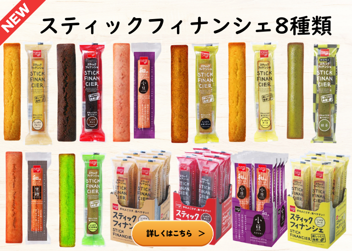 [21]メーカーの新商品、カフェや売店にレジ横販売で手に取りやすい焼き菓子、これから動き始めるゼリーギフト、梅ゼリーをご案内します。 焼き菓子シリーズは、目を引くパッケージで箱を切り取るだけでそのまま陳列できる設計です。カフェや売店のレジ横販売におすすめ!スティックフィナンシェ8種類、ザクザク食感のチョコを合わせたフィナンシェサンド4種類、ナッツやフルーツを使ったタルト2種類。どの商品も賞味期限150日です。 ぶどう・みかん・さくらんぼ・ぶどう・白桃・マンゴーの果肉入りゼリーの詰め合せです。GWの帰省、中元、お盆まで長く展開いただける涼菓ギフトです。サイズは4種類、賞味期限240日です。 毎年人気の「国産果肉じゅれ」シリーズに、国産梅ゼリーが新登場!国産の梅を丸ごと一粒入れ、酸味とすっきりとした後味が楽しめます。今年は、8種類のゼリーを販売します。販売期間内でも人気の味わいから、売切れてしまうことがございますので、お早めにご検討ください。 こちらのメーカーは、焼き菓子は、自家挽きのアーモンドにこだわっています。低温でローストして、香ばしさと風味を引き出して、フィナンシェやダックワーズ、スティックケーキ、タルトなどの焼き菓子に使っています。また、ギフト商品なども取り揃えています。 |