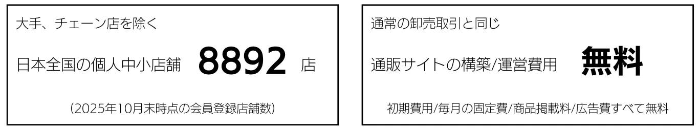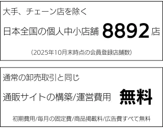 以前個人のお客様に直接小売価格で売れる通販のモールに出店して、BtoBと別のBtoCの柱をつくろうとしましたが個人のお客様は、発送する単価が低く件数が多く、在庫・配送管理の手間がかかるだけでなく、集客する広告費用も含めると大赤字となっていました……リアルなBtoB営業とは別に、自社で卸売通販の立ち上げを検討しましたが、集客に不安があるのであきらめていたところ営業サンプルの費用だけの負担でスタートできるということだったので、なごみやでネット卸売をはじめたところ、これまで取引のあった業種業態と全く異なる思いがけないところから注文が入り、正直びっくりしています。
