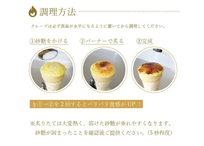 【15秒で提供】表面のカスタードクリームを炙りキャラメリゼすることで、パリッとした食感が楽しめるアイスクレープ