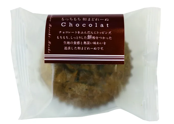 餅粉が生み出す、もちもちしっとりとした生地の食感と、奥深い味わいを追求したチョコレートをふんだんに使ったマドレーヌです。