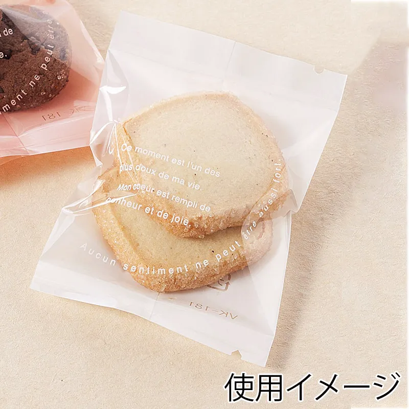 クッキー・マカロンに合わせた小さめサイズの個装用平袋です。背面に白ベタを印刷しているので、お菓子をよりくっきり引き立たせます。開封用のVカット入り。