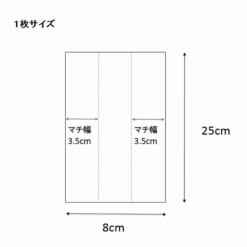 1個サイズ(入数)/寸法 | -/-/厚0.04×幅80/全体幅150×高250mm(マチ:70mm) |