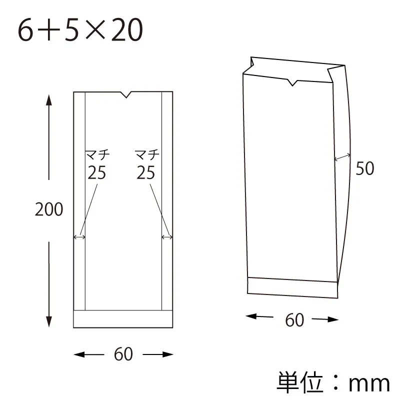 1個サイズ(入数)/寸法 | -/-/厚0.04×幅60/全体幅110×高200mm(マチ:50mm) |