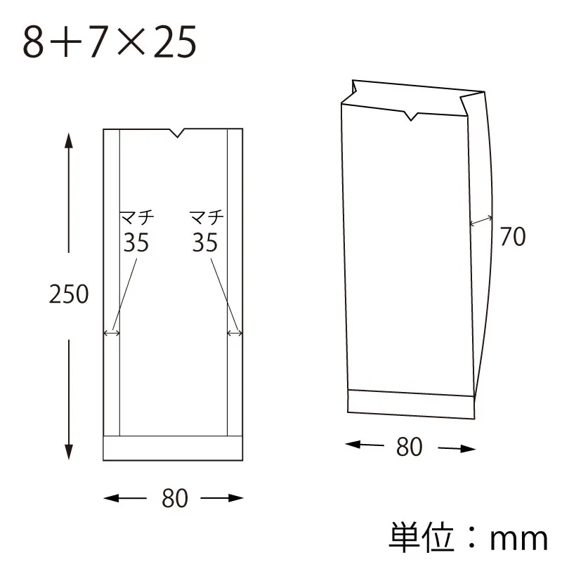 1個サイズ(入数)/寸法 | -/-/厚0.04×幅80/全体幅150×高250mm(マチ:70mm) |