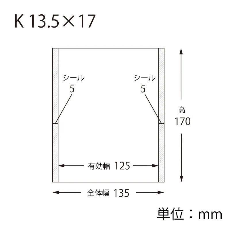 1個サイズ(入数)/寸法 | -/-/外寸:厚0.055×幅135×高170mm/有効幅:約125mm |
