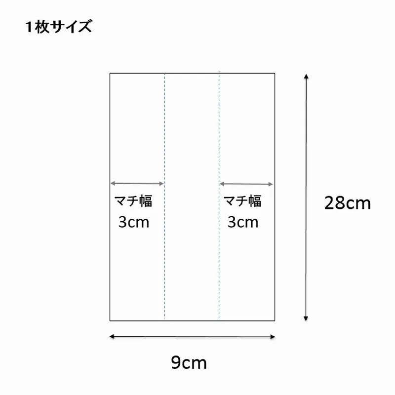 1個サイズ(入数)/寸法 | -/-/厚0.062×幅90/全体幅150×高280mm(マチ:60mm) |
