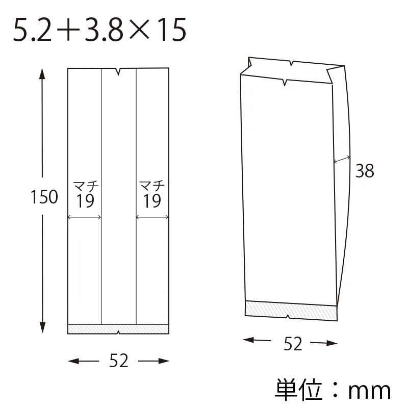 1個サイズ(入数)/寸法 | -/-/厚0.065×幅52/全体幅90×高150mm(マチ:38mm) |
