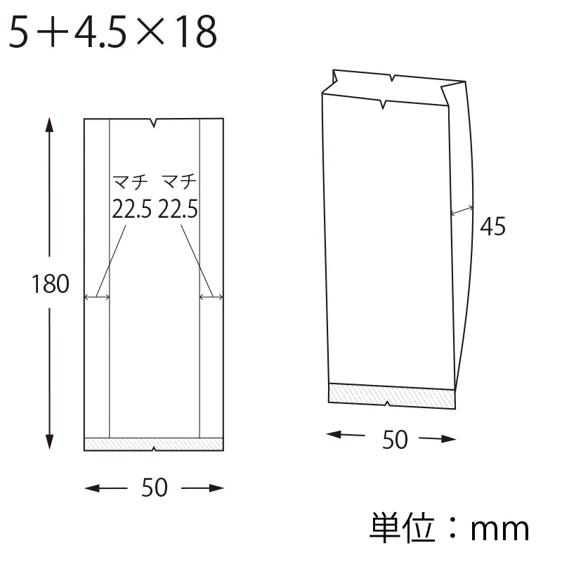 1個サイズ(入数)/寸法 | -/-/厚0.055×幅50/全体幅95×高180mm(マチ:45mm) |