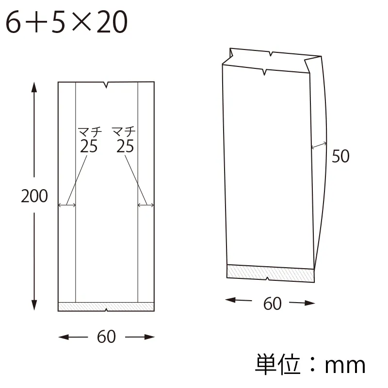 1個サイズ(入数)/寸法 | -/-/厚0.055×幅60/全体幅110×高200mm(マチ:50mm) |