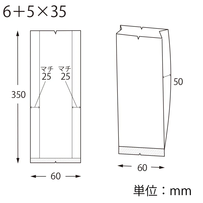 1個サイズ(入数)/寸法 | -/-/厚0.055×幅60/全体幅110×高350mm(マチ:50mm) |