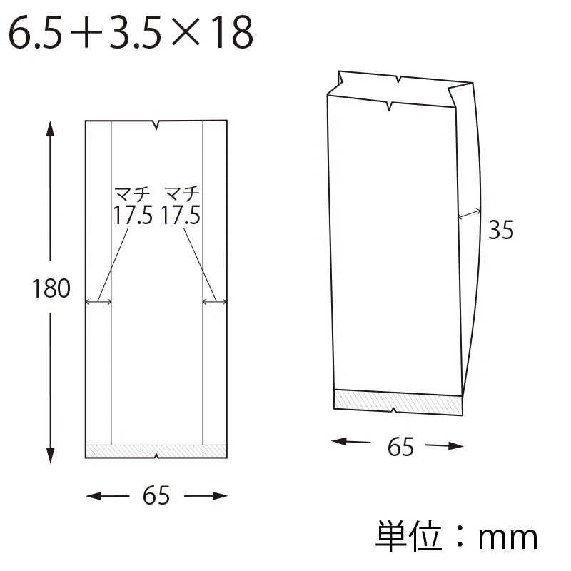 1個サイズ(入数)/寸法 | -/-/厚0.055×幅65/全体幅100×高180mm(マチ:35mm) |