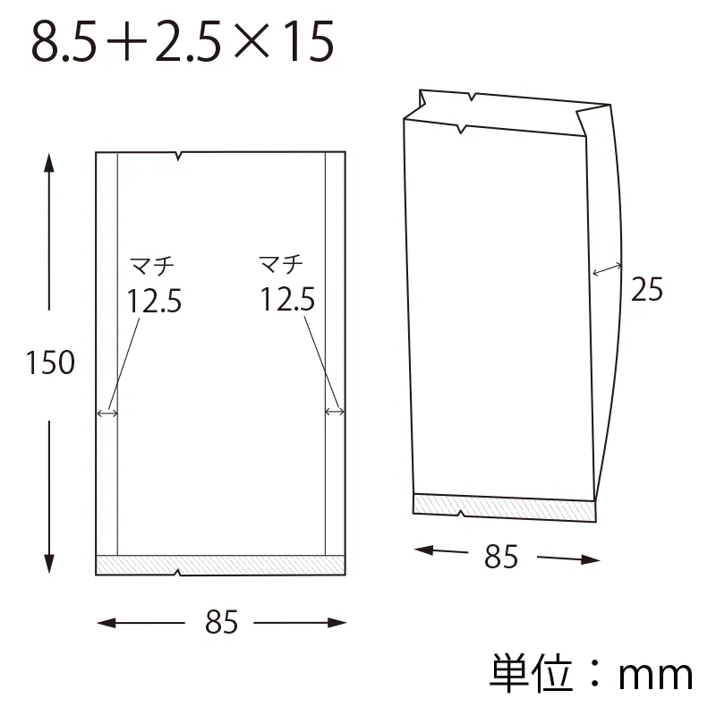 1個サイズ(入数)/寸法 | -/-/厚0.055×幅85/全体幅110×高150mm(マチ:25mm) |