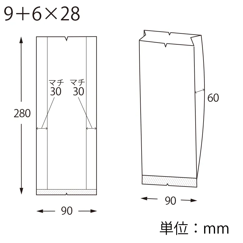 1個サイズ(入数)/寸法 | -/-/厚0.055×幅90/全体幅150×高280mm(マチ:60mm) |