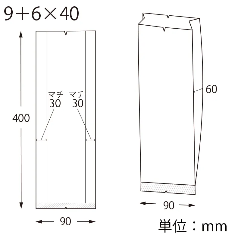 | 1個サイズ(入数)/寸法 | -/-/厚0.055×幅90/全体幅150×高400mm(マチ:60mm) |