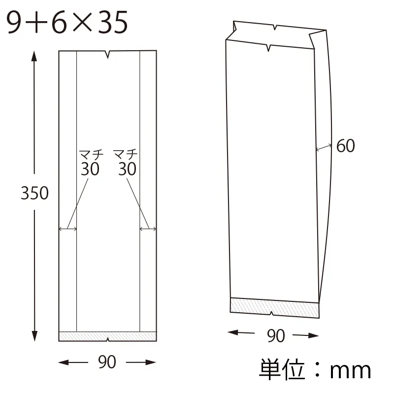 1個サイズ(入数)/寸法 | -/-/厚0.055×幅90/全体幅150×高350mm(マチ:60mm) |