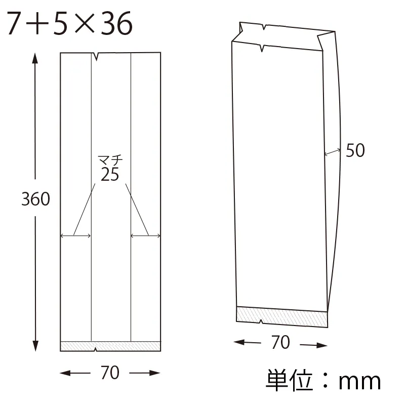 1個サイズ(入数)/寸法 | -/-/厚0.065×幅70/全体幅120×高360mm(マチ:50mm) |