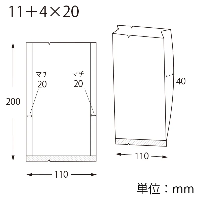 1個サイズ(入数)/寸法 | -/-/厚0.065×幅110/全体幅150×高200mm(マチ:40mm) |