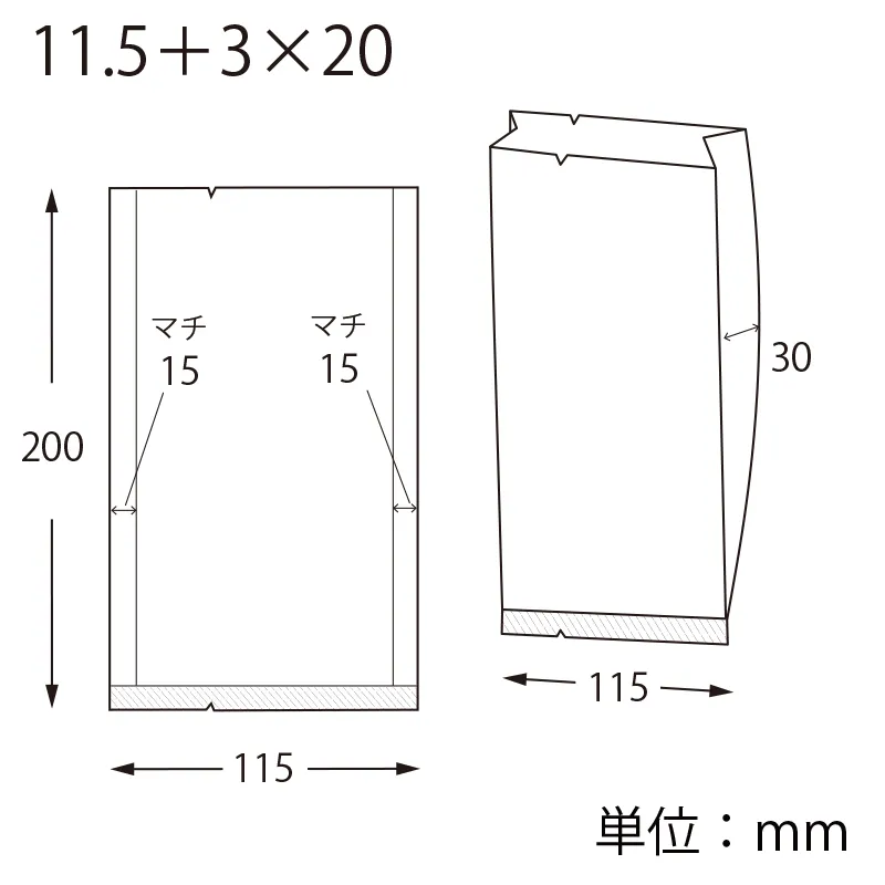 1個サイズ(入数)/寸法 | -/-/厚0.065×幅115/全体幅145×高200mm(マチ:30mm) |