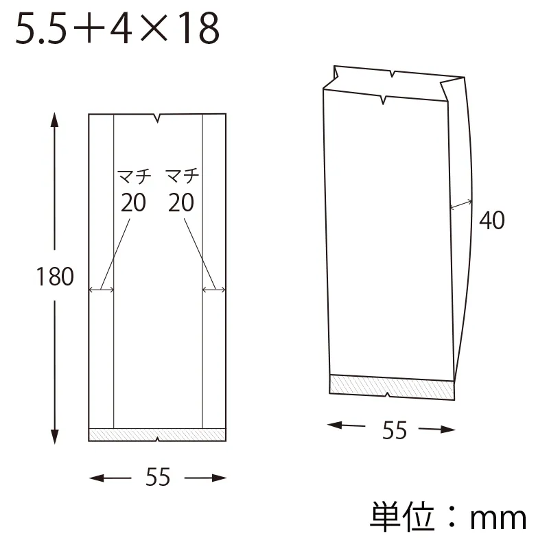1個サイズ(入数)/寸法 | -/-/厚0.06×幅55/全体幅95×高180mm(マチ:40mm) |