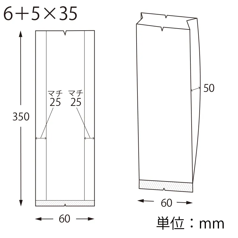 1個サイズ(入数)/寸法 | -/-/厚0.06×幅60/全体幅110×高350mm(マチ:50mm) |