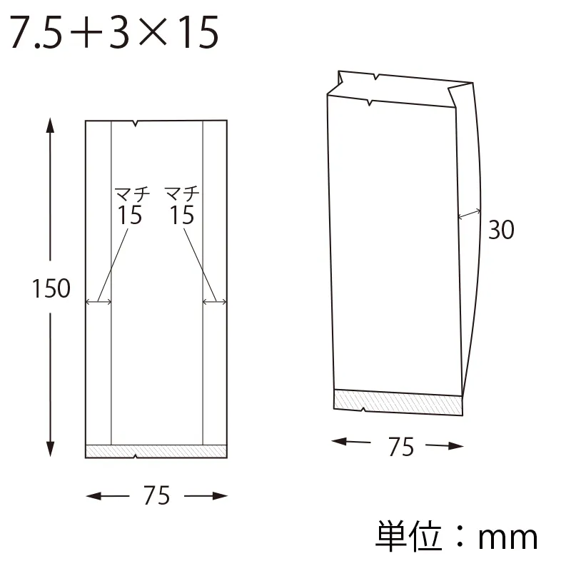 1個サイズ(入数)/寸法 | -/-/厚0.06×幅75/全体幅105×高150mm(マチ:30mm) |