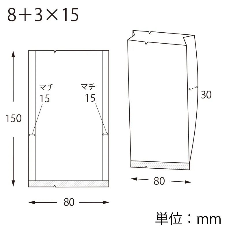 1個サイズ(入数)/寸法 | -/-/厚0.06×幅80/全体幅110×高150mm(マチ:30mm) |