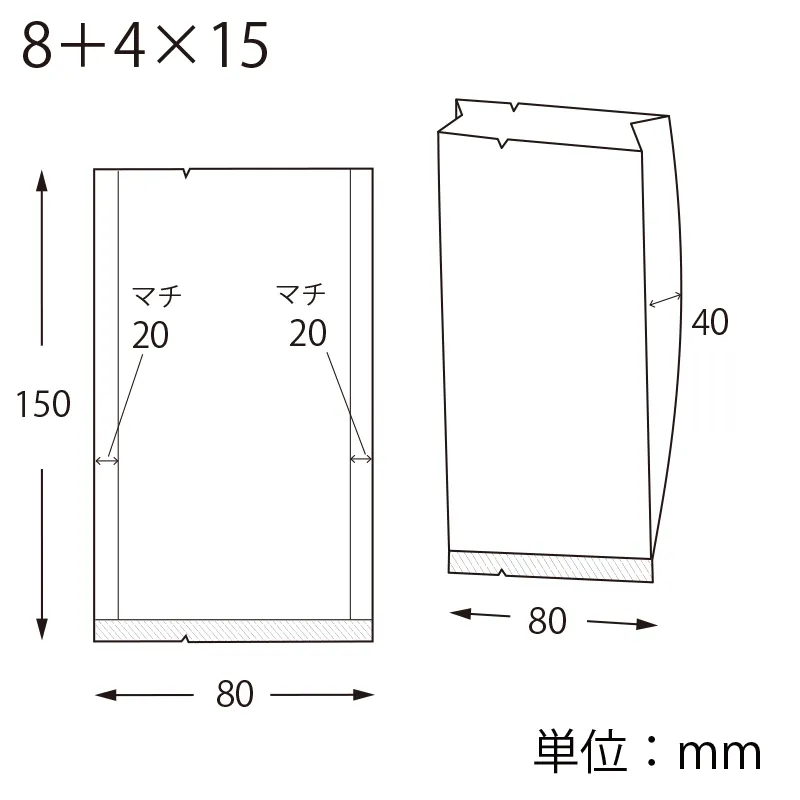 1個サイズ(入数)/寸法 | -/-/厚0.06×幅80/全体幅120×高150mm(マチ:40mm) |