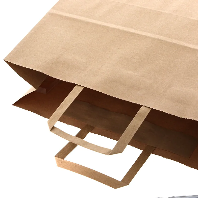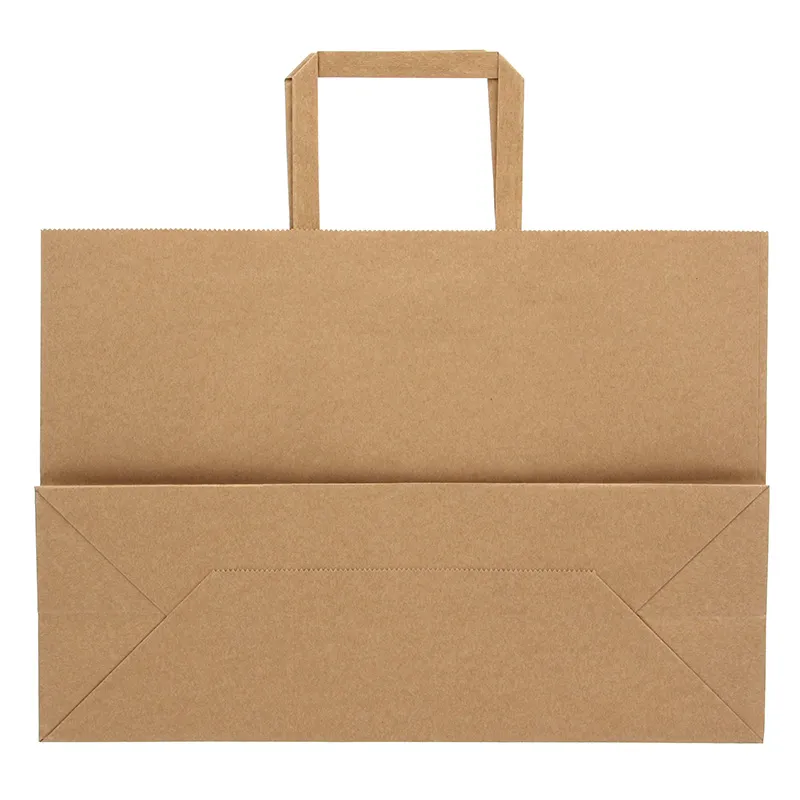 ハンドルは一般的な平紐の幅10mm幅よりも太めの12mm幅を採用しているので、手にやさしく持ちやすい紙袋です。オーソドックスなクラフト無地なので、催事など色々な用途でご使用頂けます。