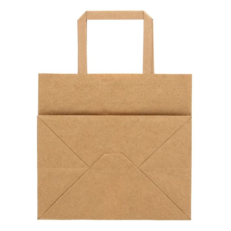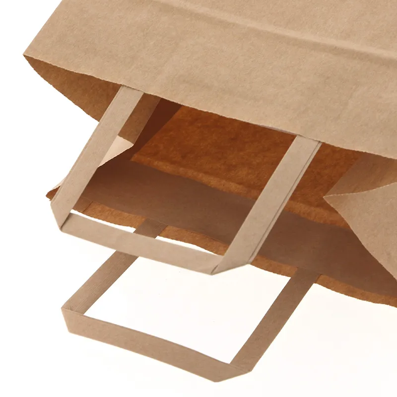 ハンドルは一般的な平紐の幅10mm幅よりも太めの12mm幅を採用しているので、手にやさしく持ちやすい紙袋です。オーソドックスなクラフト無地なので、催事など色々な用途でご使用頂けます。