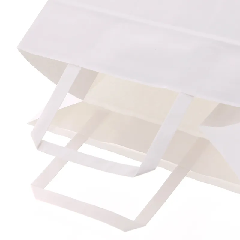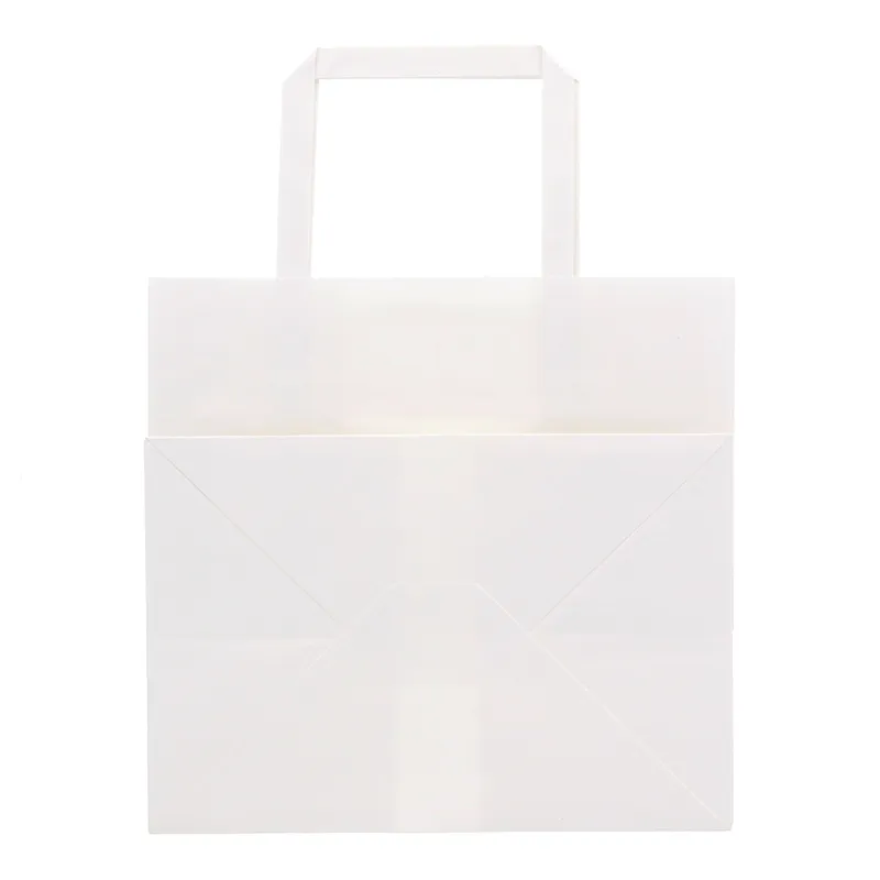 ハンドルは一般的な平紐の幅10mm幅よりも太めの12mm幅を採用しているので、手にやさしく持ちやすい紙袋です。オーソドックスな白無地なので、催事など色々な用途でご使用頂けます。