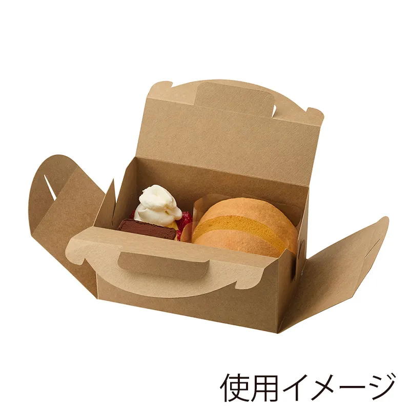 取っ手部分がアーチ型で持ちやすいキャリータイプのケーキ箱です。ナチュラルテイストなカラー。組み立て式で在庫スペースの削減に貢献します。カットケーキ4~5個が目安です。