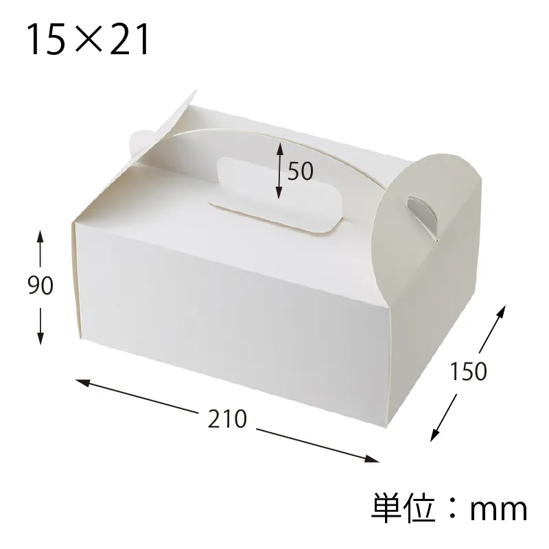 [203] ケーキ箱 カットケーキ箱 アーチハンドキャリーケーキ箱 ホワイト 15×21