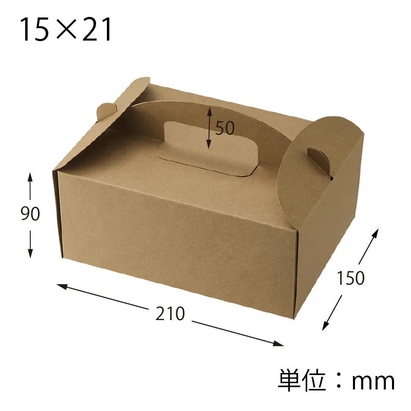 [203] ケーキ箱 カットケーキ箱 アーチハンドキャリーケーキ箱 クラフト 15×21