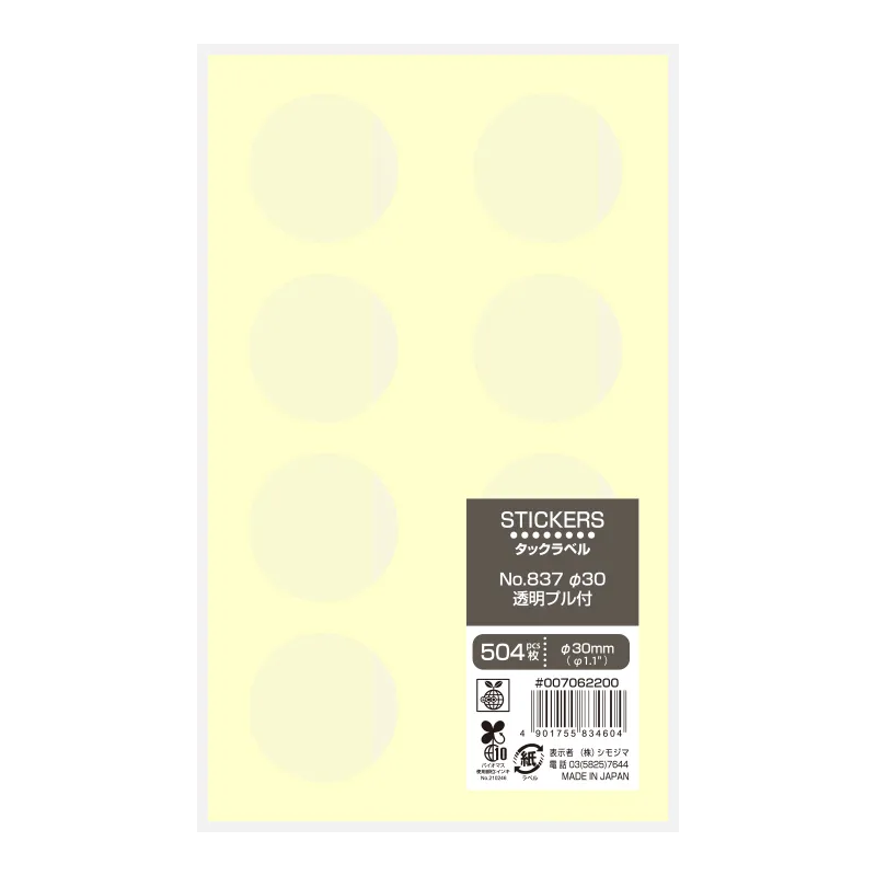 [203] ラッピング用品 封緘シール タックラベル No.837 φ30 透明プル付