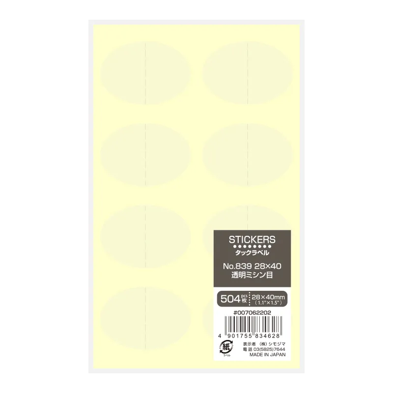 [203] ラッピング用品 封緘シール タックラベル No.839 28×40透明ミシン目