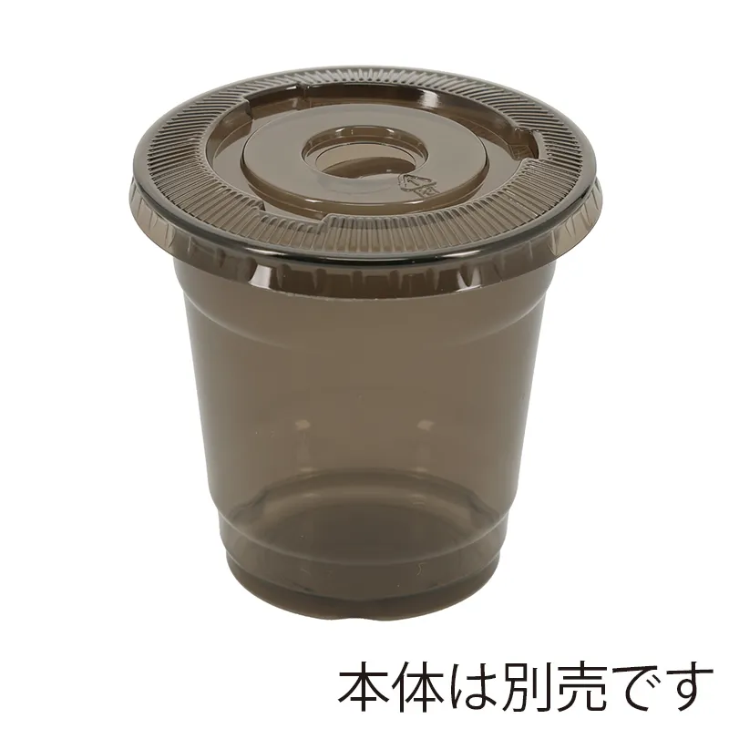半透明のブラックカラー。天面に丸型のストロー穴付き。食品衛生法規格基準適合商品です。※穴はアルファベットの「C」の文字のように、完全にくりぬかれた状態ではありません。