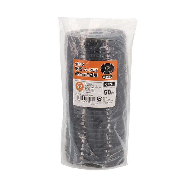 [203] 透明カップ ドリンク用 A-PET 平蓋 Nブラック 口径92 C穴付き