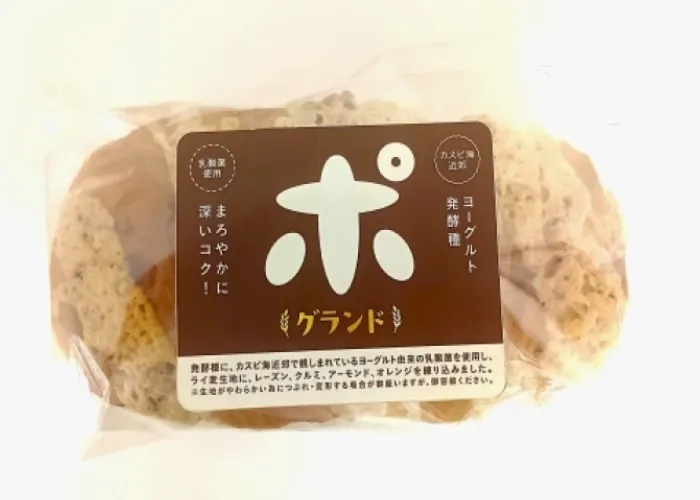 ヨーグルト由来の乳酸菌を使用し、ライ麦生地に、レーズン・クルミ・アーモンド・オレンジを練り込みました。